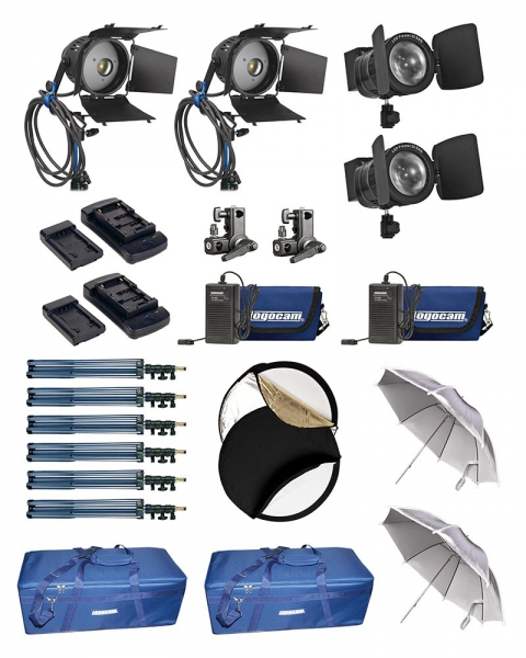 Автономный компактный осветительный комплект Logocam A-LED 900/SF DIM KIT оптимален для работы на выезде или в любом месте, где работа от сети нежелательна или невозможна. Состоит из двух компактных универсальных светодиодных светильников Logocam L-Spot 30 со световым потоком, эквивалентным мощности галогенного светильника 300 Вт, и двух светодиодных прожекторов с линзой Френеля Logocam LED Fresnel 20 ENG со световым потоком, эквивалентным мощности галогенного светильника 130 Вт. Дополнительно комплект снабжен двумя отражающими зонтами и отражателем, что позволяет значительно расширить диапазон построения различных схем освещения. В качестве автономного источника электроэнергии используются 2 комплекта портативного электропитания PK3(X) и 2 комплекта UPL 47 KIT. Возможна работа от сети 220 В (источники питания идут в комплекте). Поставляется в транспортном кофре с водоотталкивающей пропиткой. Этот осветительный комплект может быть использован для решения любых осветительных задач. Время автономной работы составляет не менее 2 ч. Масса комплекта 13 кг.