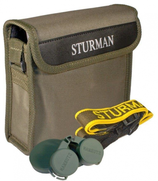 Конструктивные особенности бинокля Sturman 8-24x50Корпус бинокля Sturman 8-24x50 полностью обрезиненный и изготовлен из прочного и лёгкого алюминиевого сплава, устойчив к коррозии и деформациям. Заворачивающиеся наглазники из мягкой резины надёжно фиксируют положение глаз относительно линз окуляра, отсекая паразитную засветку и облегчая позиционирование. Классическая оборачивающая система на базе Porro призм и линзы с просветляющим покрытием обеспечивают контрастное, чистое и яркое изображение без искажения цветопередачи. При наблюдениях в условиях плохой видимости или при низком уровне естественной освещённости (на рассвете или в наступающих сумерках) рекомендуется выбирать малые увеличения из доступного диапазона, так как видимое изображение при небольших увеличениях будет более ярким. Для индивидуальной настройки бинокля нужно провести регулировку межзрачкового расстояния, начальную фокусировку бинокля и диоптрийную коррекцию правого окуляра. При смене кратности необходимо проводить перефокусировку. При проведении длительных стационарных наблюдений рекомендуется устанавливать бинокль Sturman 8-24x50 на штатив с помощью специального адаптера (адаптер и штатив приобретаются дополнительно). Комплектация бинокля Sturman 8-24x50Поставляется в комплекте с футляром для хранения и переноски, защитными крышками объективов и окуляров, широким наплечным ремнём. Штатив и штативный адаптер приобретаются дополнительно. Технические характеристики бинокля Sturman 8-24x50