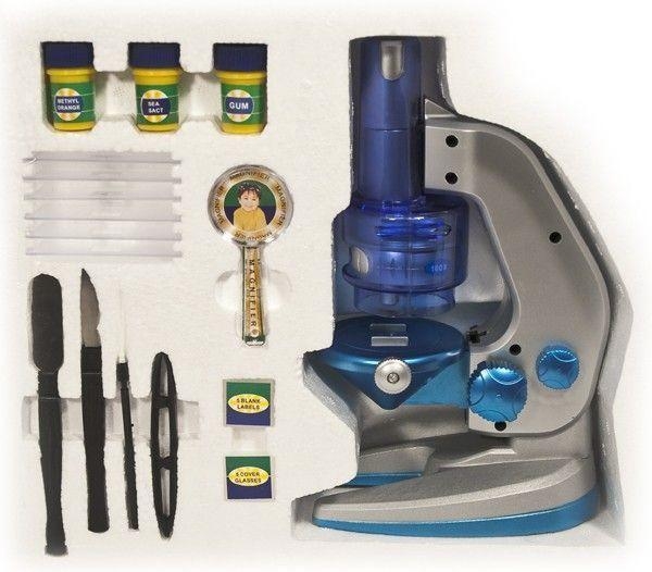 Детский микроскоп Sturman HM1000-B-1 - это развивающая игрушка для детей от 8 лет. Предназначен для расширения кругозора и первого знакомства ребёнка с микромиром. Подходит для использования в классе и выполнения домашних заданий по предметам "Окружающий мир", "Природоведение". Современный детский микроскоп Sturman HM1000-B-1 имеет 3 режима увеличения: 100; 600 и 1000 крат. Изменение увеличения происходит поворотом вращающейся головки. Микроскоп Sturman HM1000-B-1 имеет встроенную подсветку — светодиод, работающую от 2-х «пальчиковых» батареек AA (в комплект не входят). В комплект поставки детского микроскопа Sturman HM1000-B-1 входит дополнительная лупа с 3-х кратным увеличением. Кроме микроскопа в набор включены все необходимые принадлежности для исследования микромира
