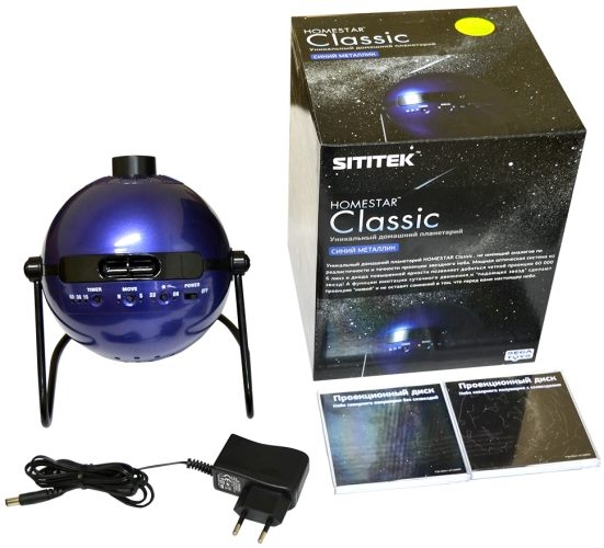 Персональный планетарий "HomeStar Classic" — уникальная модель, позволяющая создать точную копию звёздного неба на потолке или стене. На звёздной полусфере северного полушария Вы сможете изучить небесные тела и проникнуть в непостижимые космические тайны, не выходя из дома. Возможности этого планетария позволяют с успехом использовать его для изучения астрономии дома и в школе. При установке в прибор соответствующего диска из комплекта поставки он будет отображать очертания созвездий на небе. Имитация падения и суточного вращения звезд окончательно развеет сомнения, что вас окружает настоящее небо!