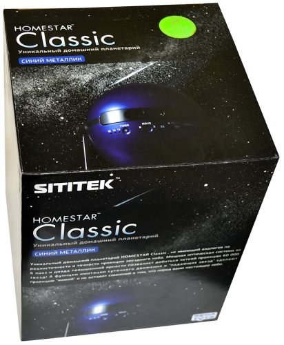 Планетарий отличается повышенным качеством оптической системы, которая состоит из 6 линз. Благодаря этому картина звездного неба получается чрезвычайно реалистичной и очень точной. Планетарий "HomeStar Classic" оснащен системой вращения небосвода и способен воспроизводить изображение "падающих" звезд. Функция изменения наклона позволяет создавать проекции не только на потолке, но и на стене, а также наклонных поверхностях. Комплектуется двумя слайдами (звезды и созвездия Северного полушария).