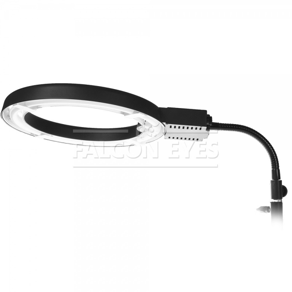 Falcon Eyes FLC-40 флуоресцентный кольцевой осветитель, мощность лампы 40 Вт, предназначен для использования при макросъемке и других съемках требующих эффективного постоянного освещения (например, кольцевые рефлексы в глазах при съемке портретов, а также как заполняющий или модулирующий источник света). Кольцевая форма осветителя позволяет расположить его центральную ось на оптической оси объектива, таким образом получить равномерное освещение объекта. Преимуществом флуоресцентных осветителей является излучение сбалансированного светового потока, низкое тепловыделение и большой ресурс работы. Близость цветовых температур стробоскопических источников света (фотовспышек) и флуоресцентных осветителей позволяет без нежелательных искажений цветового баланса применять их совместно. Индекс цветопередачи CRI ˃90, цветовая температура 5400 К. Осветители серии FLC на гибкой ножке снабженной креплением для опор с головкой диаметром 5/8". Это позволяет удобно закреплять их на штативе или стойке и легко изменять направление освещения.