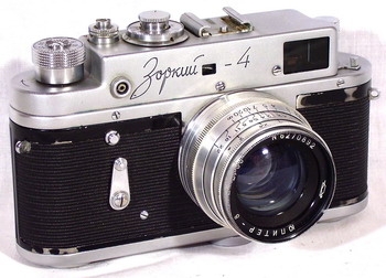 ОписаниеФотоаппарат Зоркий-4 с объективом Юпитер-8 относится к семейству советских дальномерных фотоаппаратов Зоркий-4, которые выпускались на Красногорским механическим заводом (КМЗ) в период с 1956 по 1973 год. Фотоаппарат выпускался в нескольких модификациях и отличался комплектацией различными объективами. Данный вариант является более дорогим в связи с использованием объектива Юпитер-8. Также различные версии выпусков отличались способом написания названий: латиницей или кириллицей. Камера имеет металлический корпус, со съёмной задней стенкой. Фотоаппарат позволяет использовать стандартные и двухцилиндровые кассеты. Также модель оснащена вращающейся головкой выдержек, устанавливать которые возможно только после взвода затвора. Характеристики