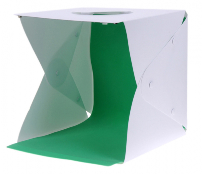 Складной фотобокс (лайткуб) 40x40 см с LED-подсветкой для предметной съемки Материал: Пластик. Возможность съемки сверху. Комплектация:
