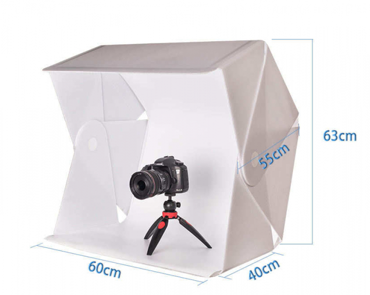Складной фотобокс (лайткуб) 60 см с LED-подсветкой для предметной съемки Материал: Пластик. Питание: 220В Комплектация: