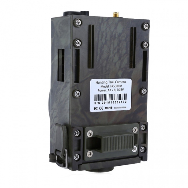Цифровая камера (фотоловушка) SunTek HC-300M HD с модулем GSM, GPRS.Предназначена для контроля определенной зоны и автоматического фиксирования на фото или видеозапись всех происходящих в этой зоне событий. Работает полностью в автоматическом режиме. Делает высококачественные снимки (до 12 Mpix) или записывает видеоролики (в том числе и ночью благодаря встроенному ИК-подсветке). Интервалы срабатывания камеры при постоянном движении в зоне наблюдения также задаются заранее. Влагозащищенный корпус камуфлированной окраски позволяет вешать камеру даже в лесу и оставлять там на длительное время. Для крепления камеры предусмотрен специальный ремень и дополнительно защитный бокс с более гибкой возможностью крепежа под разным углом. Питание осуществляется 4 или 8 батарейками АА. Фото или видеозапись идет на карту SD (до 32 Гб, в комплект не входит) и отправляется на телефон в виде MMS или на электронную почту через GPRS. Управление и настройка камеры осуществляется пультом ДУ.