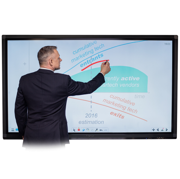 Prestigio Multiboard 86" - это инновационный сенсорный интерактивный дисплей внушительного размера c использованием технологии шеститочечного Touch экрана и интегрированного ПК на базе Intel. Размер Prestigio Multiboard 86" позволяет сравнивать его с интерактивной доской, только ей для работы нужен проектор и компьютер, а Престижио Мультиборд 86" не нужно ничего! Проектор не нужен т.к. Multiboard 86" сам по себе дисплей, а компьютер с установленной Windows не нужен, потому что он уже встроен. Больше не мешают провода от нескольких устройств, постоянные калибровки и настройки. Prestigio Multiboard 86" завершенная интерактивная система, готовая к работе.