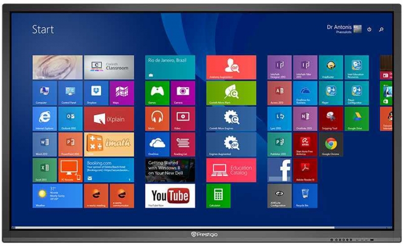 Prestigio Multiboard 98" - это инновационный сенсорный интерактивный дисплей внушительного размера c использованием технологии шеститочечного Touch экрана и интегрированного ПК на базе Intel. Размер Prestigio Multiboard 98" позволяет сравнивать его с интерактивной доской, только ей для работы нужен проектор и компьютер, а Престижио Мультиборд 98" не нужно ничего! Проектор не нужен т.к. Multiboard 98" сам по себе дисплей, а компьютер с установленной Windows не нужен, потому что он уже встроен. Больше не мешают провода от нескольких устройств, постоянные калибровки и настройки. Prestigio Multiboard 98" завершенная интерактивная система, готовая к работе.