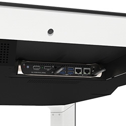 Современный утонченный дизайн интерактивных столов серии Т подойдет к интерьеру большинства коммерческих и образовательных учреждений. ПК-модуль EZ OPS размещается под поверхностью стола во избежание повреждений. Кнопка возврата «Домой» эргономично расположена и позволяет пользователям быстро переключаться между источниками сигнала и менять ОС одним прикосновением.