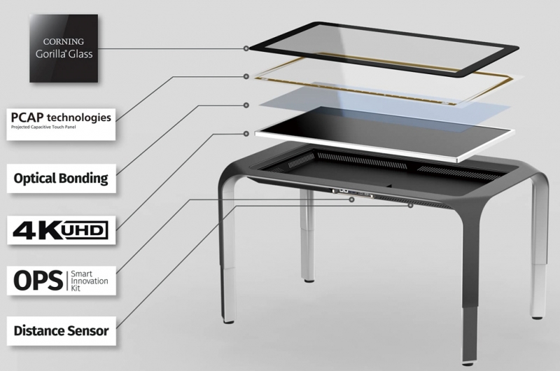 Столы серии Т собраны по технологии оптического склеивания (Direct Bonding) – экран присоединяется к сенсорной панели без каких-либо зазоров. Преимущества оптического склеивания заключаются в снижении бликования и запотевания экрана, а также в значительном укреплении конструкции в целом.
