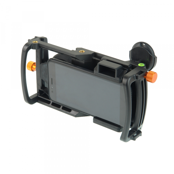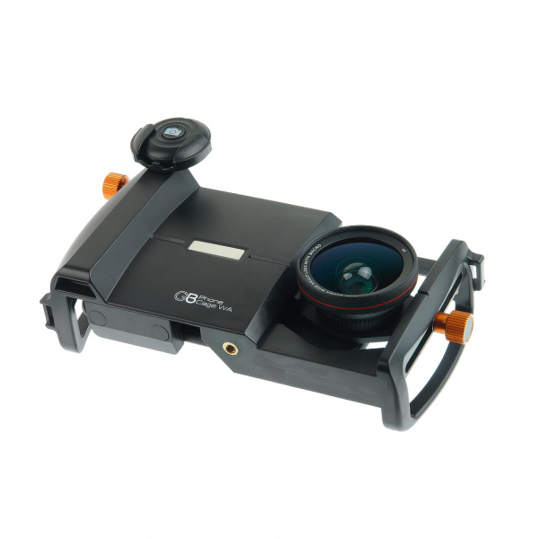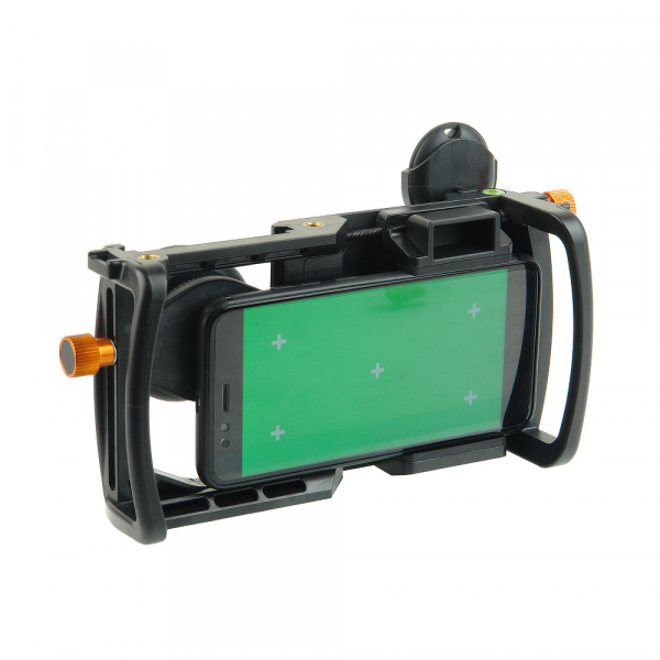 Клетка GreenBean Phone Cage WA для смартфона GreenBean Phone Cage WA – клетка для видеосъемки с помощью смартфона/камерафона с использованием широкоугольного объектива и макролинзы. Прочная эргономичная конструкция позволяет вести съемку с мобильного устройства и получать качественное изображение как при использовании профессионального оборудования. Удобный двуручный хват и надежная фиксация смартфона в подпружиненном держателе с резиновыми накладками оптимизируют съемочный процесс и помогают в итоге получить более четкое и плавное изображение. Кнопка Bluetooth (под правую руку) упрощает управление съемкой, исключает возможные рывки при запуске и окончании записи. Пузырьковый уровень как на профессиональных видеоштативах позволяет даже при экшн-съемке следить за положением камеры и не заваливать горизонт. Два регулировочных винта с крупными ребристыми головками помогают точно совместить камеру с прикрепленным к клетке объективом. Одним регулируется положение смартфона по горизонтали, другим – смещение адаптера с закрепленным на нем объективом по вертикали. Установить осветитель, микрофон и другие дополнительные устройства из ассортимента GreenBean можно в отверстия 1/4” с латунными втулками на верхней панели клетки. Для крепления подойдут головы, кронштейны и переходники. Закрепить клетку на штатив, мини-штатив, слайдер или стедикам позволяет посадочное гнездо с латунной втулкой под винт 1/4”. Это обеспечит стабильность изображения и поможет использовать преимущества работы с различными объективами, например с входящими в комплект широкоугольным объективом 0,5х и макролинзой 10х. С Phone Cage WA качественное видео сможет снять и динамичный участник рейва, и терпеливый мирмикипер. Петли на верхних углах клетки служат для крепления нашейного ремня (в комплект не входит), который вовремя подстрахует и даст отдых рукам оператора.