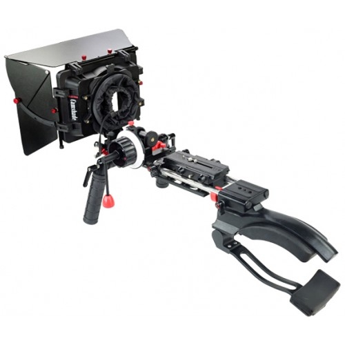 Телескопические рукоятки плечевого рига крепятся к стандартной 15-миллиметровой рельсовой системе. Их положение регулируется и прочно фиксируется. Позволяют оператору прочно держать риг у себя на плечах.