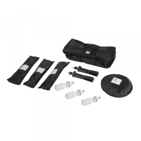 Комплект для предметной съемки Falcon Eyes LFPB-3 kit Комплект LFPB-3 kit подходит для предметной съемки небольших объектов для сайта, инстаграма, каталога или буклета. Компактное оборудование удобно использовать не только в студийных или домашних условиях, но и на выезде. Легкие складные конструкции – фотобокс, софтбоксы и стойки – позволяют оперативно приступить к работе. Быстрораскладной фотобокс размером 80х80х80 см из светопропускающей белой ткани дает возможность бестеневого освещения объекта. Схему освещения можно выстраивать на базе трех источников постоянного света – двух софтбоксов на стойках и одного, размещаемого сверху на фотобоксе. Складные софтбоксы с серебристой фактурной внутренней поверхностью и полупрозрачными светорассеивателями дают равномерно распределенный световой. Прямоугольные софтбоксы (50х70 см) занимают небольшое пространство. Угол наклона софтбокса регулируется с помощью кронштейна, что дает возможность изменить интенсивность освещения и сформировать нужный светотеневой рисунок. Люминесцентные (флуоресцентные) лампы – энергосберегающий источник постоянного света. В комплект входят лампы (150 Вт, Е27) с цветовой температурой 5500 К, эквивалентной прямому полуденному солнечному свету. Ресурс лампы – 8000 часов работы. Двухсекционные стойки со стальными несущими элементами выдвигаются на высоту до 68 см. Секции фиксируются винтовыми зажимами. Крепежный наконечник диаметром 5/8" снабжен винтом с резьбой ¼", что позволяет использовать стойку для установки других устройств весом до 0,8 кг. Для хранения и транспортировки комплекта служит сумка из износостойкого полиэстера Oxford.