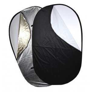 Комплект прямоугольных отражателей серия RR 5 в 1. В развернутом состоянии — 102 x 168 см, в свернутом — 51. Цвет отражающих поверхностей: белый, черный, золотой, серебряный, белый просветный. |