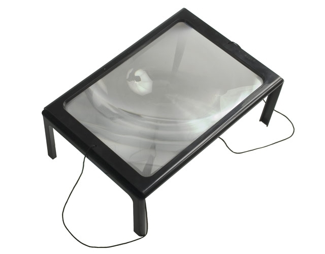 Комплектуется шнурком . Технические характеристики Увеличение, крат: 3 Размер линзы, мм: 275x195 Высота ножек, мм: 100 Материал: пластик Вес, г: 163 |