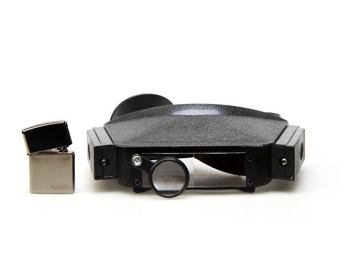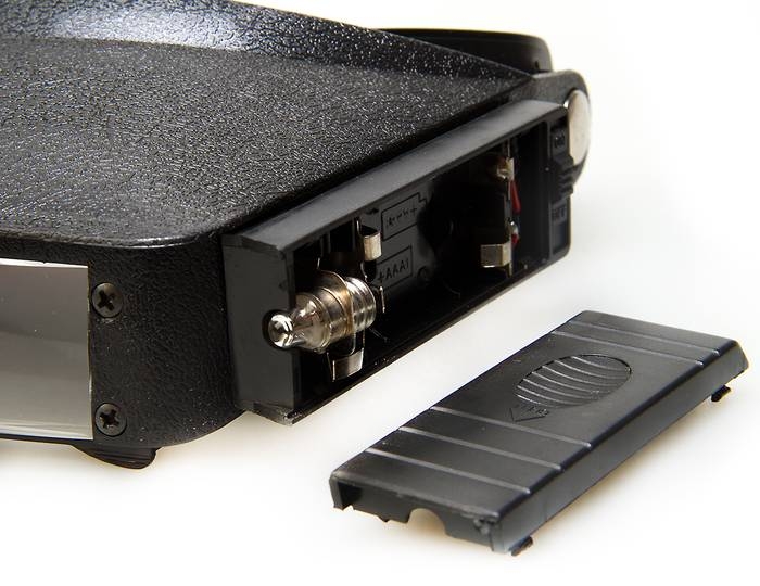 Применение: мелкий ремонт, радиотехника, при ювелирных работах и т. д. Увеличение: две прямоугольных линзы размером: 44×29 мм каждая плюс круглая поворотная линза диаметром 29 мм. Подсветка: две лампочки накаливания, размещенные в корпусе батарейных отсеков слева и справа от края линз. Питание: 4 батарейки типа AAA (по 2 на каждую лампочку), в комплект не входят. Выключатели находятся в задней части батарейных отсеков. Ремешок с липучкой позволяет закрепить лупу на голове наблюдателя. Устройство крепления позволяет поднимать козырек с линзами и оставлять его в фиксированном (поднятом) положении. Технические характеристики Базовое увеличение, крат: 1,8 Увеличение с поворотной линзой, крат: 3,7 Питание: 4 батарейки AAA Материал линз: пластик Материал корпуса: пластик Вес, г: 160 |