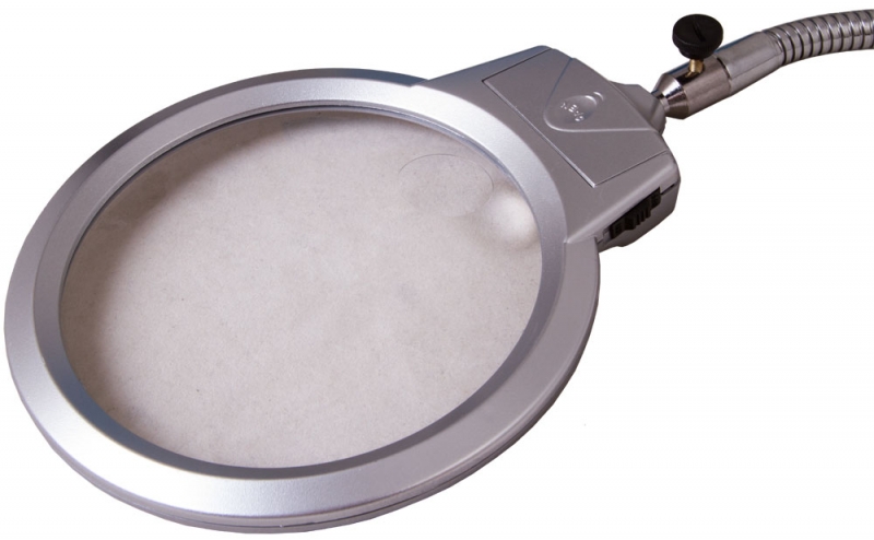 Лупа настольная Levenhuk Zeno Desk D9 Настольная лупа Levenhuk Zeno Desk D9 – удобный оптический прибор для изучения мелких предметов. Бифокальная линза большого диаметра предназначена для работы на разной кратности, а гибкий штатив помогает точно расположить лупу над нужной областью. Линза сделана из прочного оптического пластика. С помощью держателя-прищепки лупу удобно фиксировать на столе, полке или даже дверце шкафа. Встроенная подсветка поможет проводить наблюдения в слабо освещенных помещениях. Она состоит из 2 светодиодов, которые установлены в оправе линзы. Для включения подсветки используется переключатель на корпусе.