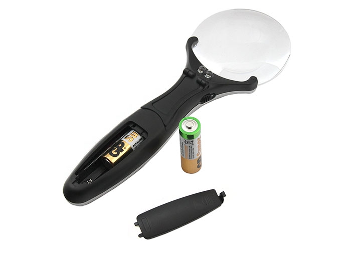 Конструкция лупы содержит выкидную подпорку для установки на плоскую поверхность. Подсветка — два светодиода. Чехол в комплекте. Питание — батарейки АА 2 шт. в комплект не входят. Технические характеристики Увеличение, крат: 3 Диаметр линзы, мм: 75 Материал линзы: акрил Материал корпуса: пластик Питание: 2 батарейки AA 1.5V Вес, г: 77 |