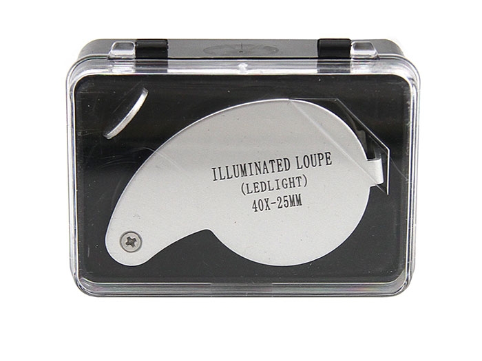 Подсветка — два светодиода. Конструкция — брелок. Футляр в комплекте. Технические характеристики Увеличение, крат: 40 Диаметр линзы, мм: 25 Питание: 4 батарейки AG10 Материал линзы: акрил Материал корпуса: металл, пластик Вес, г: 26 |
