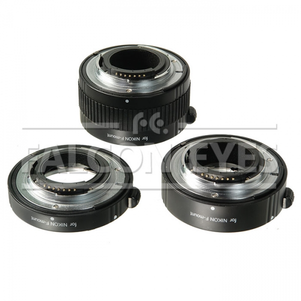 Набор удлинительных колец с поддержкой автофокуса, используются для макросъемки. За счет увеличения рабочего отрезка позволяют фокусироваться с более близкого расстояния и снимать объекты в увеличенном масштабе. Изготовлены из алюминия и ударопрочного пластика. Макрокольца устанавливаются между объективом и корпусом камеры с помощью байонетного крепления, не имеют линз — поэтому не вносят в изображение оптических искажений и не ухудшают качество изображения. С помощью удлинительных колец можно создавать макрофотографии, не покупая дорогостоящие макрообъективы. Удлинительные кольца имеют контакты передачи сигнала, поэтому сохраняются все функции объектива, такие как автоматическая фокусировка (AF) и регулировка диафрагмы. Данные макрокольца совместимы со всеми объективами Nikon AI. Комплект макроколец включает в себя три удлинительных кольца 12 мм, 20 мм и 36 мм. Удлинительные кольца можно устанавливать по отдельности или комбинировать в любом порядке. Возможны 7 вариантов комбинации: 12 мм, 20 мм, 36 мм, 32 мм, 48 мм, 56 мм, 68 мм.