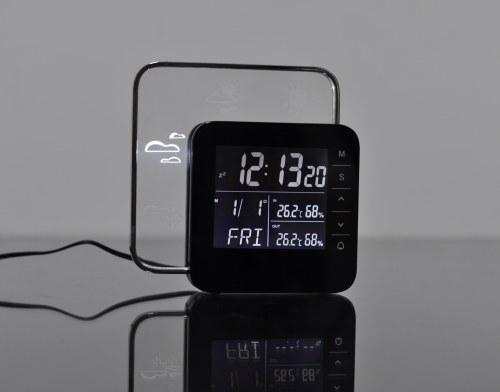 Помимо данных об окружающих условиях и погоде на дисплее метеостанции выводится текущее время (в формате 12 или 24), текущая дата и день недели. Информация часов и календаря отображается крупными символами, которые отчетливо видны с расстояния в несколько метров, а благодаря встроенной подсветке читается даже в темное время суток. Дополнительно в часах есть встроенный будильник с функцией отсрочки. Все это позволит использовать модель "HighStar 1146B" в качестве нескольких устройств, которые в последнее время являются обязательными атрибутами офисного стола. А благодаря стильному дизайну и разноцветной встроенной подсветке метеостанция станет настоящим украшением интерьера.