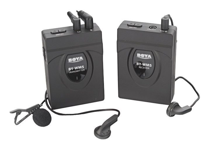 Микрофон петличный беспроводной Boya BY-WM5 BY-WM5 - это набор для качественной записи на расстоянии. Он предназначен для использования с DSLR и видео камерами, а также с портативными рекордерами. Благодаря передаче по стандарту GFSK 2.4 гГц эта модель позволяет получить стабильный сигнал на дистанции от 60 до 80 м. Низкочастотный фильтр микрофона предназначен именно для записи речи.