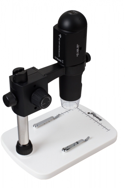 С микроскопом Levenhuk DTX 720 WiFi вы сможете изучать непрозрачные объекты: микросхемы, банкноты, монеты, ювелирные изделия и многое другое. Увеличение плавно меняется от 10 до 200 крат – эта модель по-настоящему универсальна. Для работы с микроскопом используется приложение Levenhuk DTX, которое доступно на iTunes App Store и Google Play Store. С помощью беспроводной технологии Wi-Fi прибор подключается к мобильному устройству. Изображение при этом выводится на экран в режиме реального времени. Вы можете редактировать изображение, делать фотографии, снимать видео и даже отправлять результаты вашей работы коллегам или друзьям! Кроме того, микроскоп может работать и при подключении к компьютеру через USB-кабель – необходимое программное обеспечение входит в комплект. Удобный штатив позволяет плавно менять расстояние до препарата. На предметный столик нанесена измерительная шкала. Для освещения препарата используется подсветка из шести белых светодиодов. Яркость подсветки регулируется – для каждого объекта можно подобрать оптимальный уровень освещения. Прибор работает от встроенного литий-ионного аккумулятора, заряда которого хватает на 90 минут непрерывного использования.