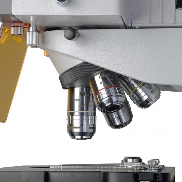 • Пружинная оправа у объективов увеличением 40 и 100 крат обеспечивает предохранение от механического повреждения фронтальной линзы объектива и объекта