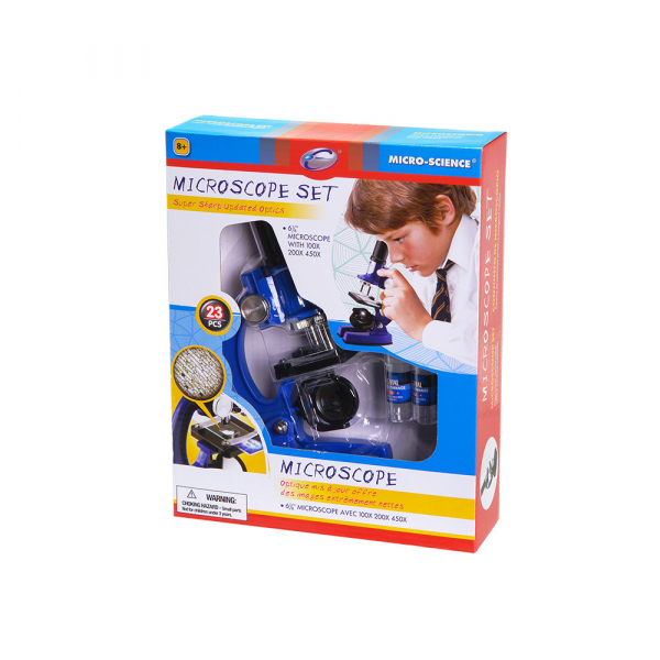 Отличный подарок для ребёнка, желающего погрузиться в увлекательный мир микробиологии. Микроскоп оснащен зеркалом для подсветки объекта исследования от источника естественного или искусственного освещения. В комплекте к микроскопу идёт одно предметное стекло с уже заранее подготовленным препаратом, и целых 4 предметных стекла для приготовления своих микропрепаратов, с чистыми стикерами для маркировки. Прямо как в настоящей лаборатории!