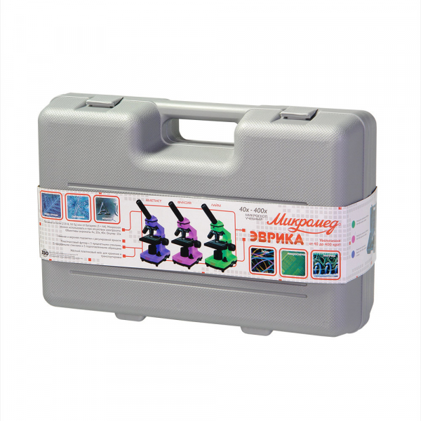 Микроскоп школьный Эврика 40х-400х в кейсе (лайм)