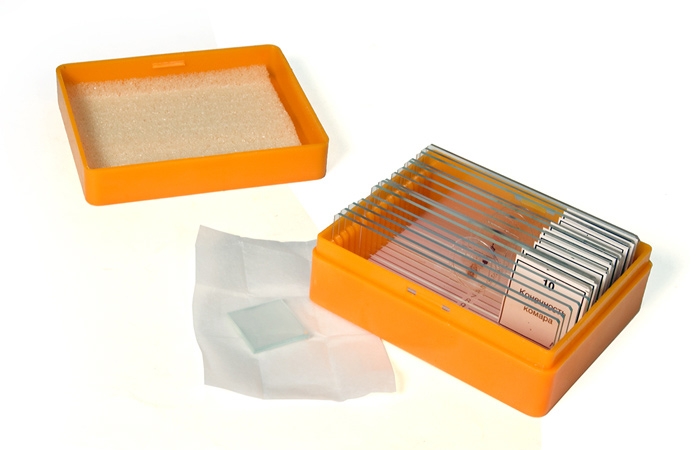 Комплектация A: предметные (5 шт.) и покровные стекла (10 шт). Комплектация B: предметные (12 шт.) и покровные стекла (20 шт). |