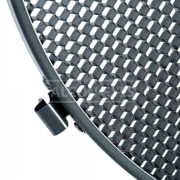 Насадка сотовая для портретной тарелки служит для получения более жесткого и узконаправленного света. Снабжена креплением для установки в портретную тарелку-рефлектор. Изготовлена из металла. Размер ячеек 5х7 мм.