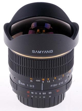 Объектив Samyang Fisheye 8mm f/3.5 - это сменный широкоугольный объектив, предназначенный для цифровых фотокамер формата APS-C с ручной фокусировкой, относится к типу "диагональных" фишаев. Объектив формирует изображение с полем зрения 180 градусов. В конструкции имеется просветленная асферическая линза, которая предупреждает нежелательные оптические искажения.Благодаря использованию многослойного противобликового покрытия и асферической системе линз, оптические параметры находятся на самом высоком уровне. Конструкция объектива выполнена из пластика и металла, что повышает его устойчивость и надежность.