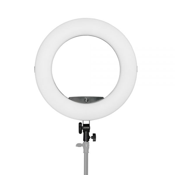 Осветитель кольцевой Falcon Eyes BeautyLight 480 LED Широкая сфера применения Кольцевая лампа Falcon Eyes BeautyLight 480 LED станет удачным приобретением не только для фотографа, но и для визажиста, блогера, косметолога, тату-мастера, магазина косметики и т.д., для тех, кому необходим удобный источник мягкого и равномерного света. Диаметр осветителя 45 см Светодиодный осветитель BeautyLight 480 LED представляет собой легкий и компактный осветитель с источником света в виде кольцевой панели диаметром 45 сантиметров с 480 светодиодами мощностью 96 Вт. Благодаря такой форме свет распределяется равномерно, освещая скрытые тенью участки. Регулировка цветовой температуры BeautyLight 480 LED позволяет регулировать цветовую температуру лампы от 3200К до 5500K без использования фильтров. Встроенное бесступенчатое управление цветовой температурой поможет совмещать BeautyLight 480 LED с другими светильниками или отвечать требованиям естественного освещения окружающей среды. Удобная эргономика Все регулировки и настройки производятся всего одним валкодером, который представляет собой регулятор-кнопку, с помощью которого возможна регулировка яркости, цветовой температуры, выбор канала и группы. Валкодер расположен на задней панели управления рядом с ЖК-экраном и дублируется на передней стороне осветителя для удобного и быстрого доступа к настройкам без выхода из кадра. Пульт дистанционного управления В комплект поставки входит беспроводной пульт дистанционного управления осветителем/группой осветителей на расстоянии до 50 м: удаленного включения/выключения, регулировки яркости и цветовой температуры. Благодаря возможности дистанционного управления параметрами каждого осветителя в студии отсутствует необходимость обходить каждый из них при настройке, работать с приборами становится удобнее, а у фотографа появляется больше возможностей для реализации творческих идей. Flicker-free Технология Flicker-free позволяет снимать видео без мерцания со скоростью записи 60 кадров в секунду. Эффект мерцания отсутствует на всех значениях яркости прибора. Точная регулировка яркости Прибор позволяет точно выбрать требуемое значение яркости и быстро вернуться к заранее подобранным настройкам. Значение яркости отображается на LCD экране, индикация 01-100 с шагом 1. Компактный и портативный Небольшие размеры осветителя и низкий уровень потребляемой светодиодами мощности делают этот осветитель, создающий тем не менее достаточно мощный световой поток, привлекательным для использования как в помещении, так и на выезде с использованием в качестве источника питания двух аккумуляторов Sony NP-F550/F750/F970. Установка дополнительных аксессуаров Благодаря двум монтажным креплениям типа "башмак", расположенным внутри кольца и снаружи, на осветителе можно установить дополнительное оборудование – смартфон для съемки фото- или видео, дополнительную подсветку или зеркало (соответствующие кронштейны приобретаются отдельно).