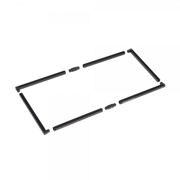 Каркас осветителей серии FlexLight представляет собой сборную систему рамок, что позволяет из нескольких осветителей собрать один большой для создания подходящего размера. На каркасе имеется монтажное отверстие 1/4" для установки на стойки или другие опоры. Лента-липучка приклеена на каркас с двух сторон и используется для крепления светодиодного мата и рассеивателя.