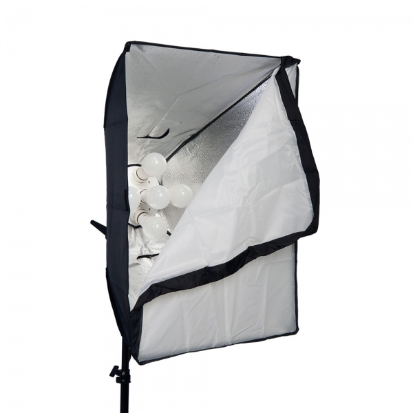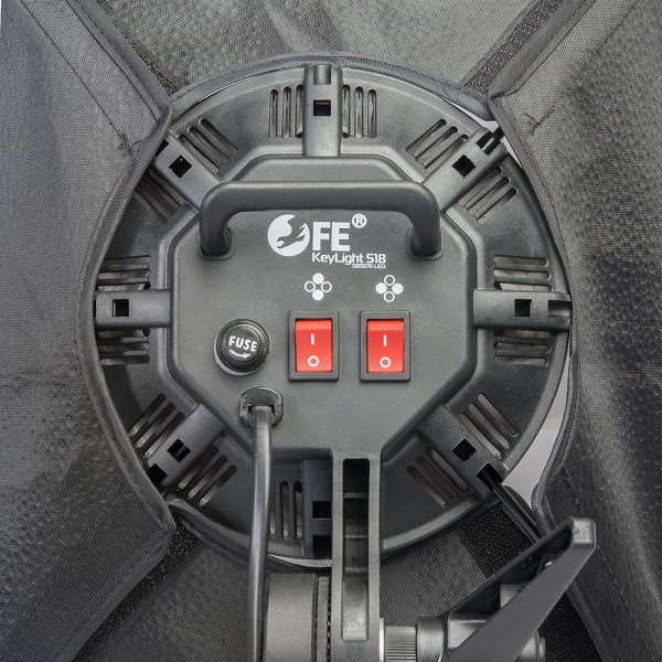Осветитель светодиодный Falcon Eyes KeyLight 518 SB5070 LED Falcon Eyes KeyLight 518 SB5070 LED - светодиодный комплект предлагает фотографам и видеооператорам готовое решение, подходящее для съемки в различных жанрах – от съемок на документы до съемки рекламных каталогов. В комплект входит светильник с 5 патронами E27, 5 светодиодных ламп с дневным светом (5400К) мощностью 18 Вт каждая, софтбокс 50х70 см и 3-х секционная стойка высотой 190 см. 5-ламповый светодиодный осветитель Осветитель оборудован 5 патронами стандарта Е27, в которые устанавливаются светодиодные лампы. На задней панели расположены два переключателя, каждый из которых управляет функцией включения/выключения для двух ламп расположенных по периметру, а центральная лампа включается общим переключателем, который находится на кабеле питания. Осветитель питается от сети 220 В и имеет стандартный разъем для установки на стойки с креплением 5/8". Осветитель можно использовать самостоятельно или вместе с софтбоксом 50х70 см из комплекта поставки. Софтбокс 50х70 см В комплект входит прямоугольный световой модификатор размером 50х70 см, поддерживаемый 4-мя стальными спицами, которые устанавливаются в осветитель KeyLight 518 и формируют монолитную конструкцию. Внутри софтбокса находится фактурная серебристая ткань, спереди на липучки крепится рассеиватель. Софтбокс создает мягкое рассеянное освещение без резких теней. Входящий в комплект софтбокс предназначен для использования только с осветителем KeyLight 518 и светодиодными лампами. Стойка 190 см Алюминиевая стойка с пружинным амортизатором (на нижней секции) поднимается на высоту до 190 см и складывается до 69 см. Пружинный амортизатор предохранит оборудование от повреждения при случайном ослаблении зажимов. На ножки стойки можно установить ролики (приобретаются отдельно).
