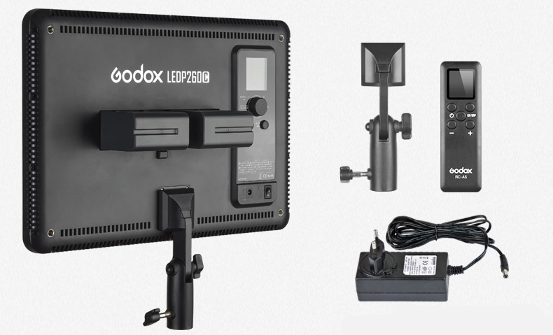 Осветитель светодиодный Godox LEDP260C накамерный Отлично подходит для макросъемки, предметной съемки, фотожурналистики, видеосъемки т.п. Оснащен светопроводящей панелью, обеспечивающей мягкий свет, равномерное освещение, широкий спектр и точную цветовую температуру. Беспроводная система управления группами (6 групп и 16 каналов) Настраиваемая яркость и цветовая температура Питание от литиевой аккумуляторной батареи или источника постоянного тока Литиевая батарея. Зарядка от источника постоянного тока Широкоформатный ЖК дисплей. Автоматическое запоминание настроек. Включает пульт дистанционного управления, съемная ручка и сетевой адаптер.