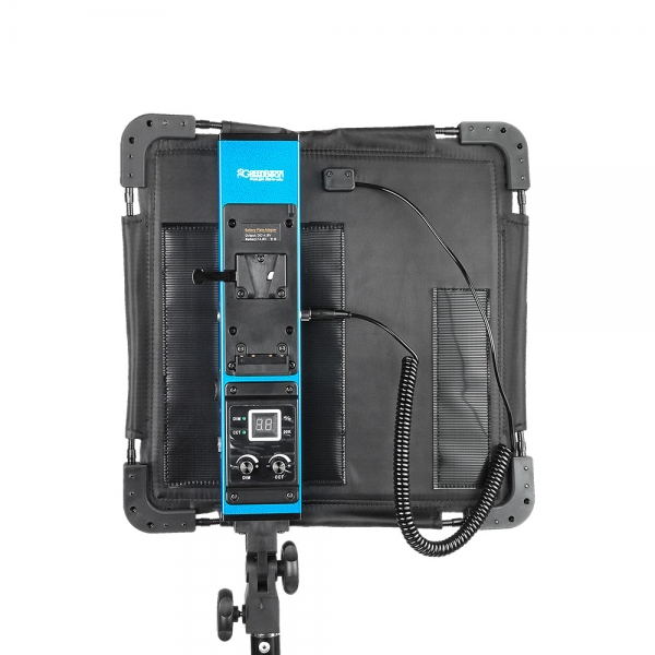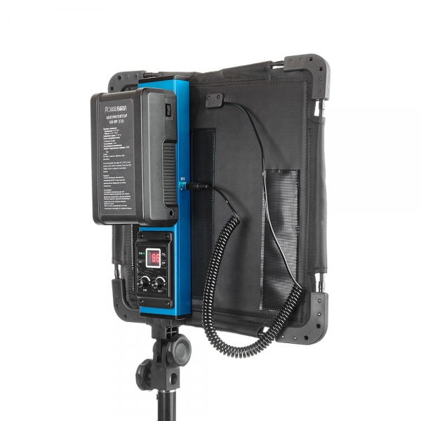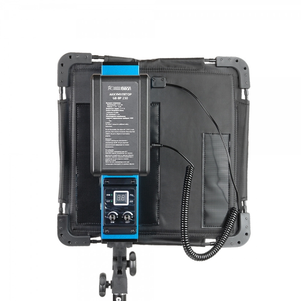 Осветитель светодиодный GreenBean FreeLight 288 bi-color Гибкая и ударопрочная панель осветителя FreeLight 288 bi-color, защищенная от пыли в лаги по стандарту IP67, позволяет использовать прибор в самых неблагоприятных условиях вне студии. Мощности 288 современных сверхярких SMD светодиодов (CRI более 96) будет достаточно для решения большинства задач съемки. В комплекте удобная черная сумка для переноски с органайзером внутреннего пространства. Липучки надежно фиксируют световую панель внутри сумки, исключая возможность повреждения при перевозке. Мощность светового потока, а также цветовая температура плавно регулируются при помощи модуля управления, получающего питание от аккумуляторов V-mount или бытовой сети 220В. Модуль управления может быть размещен на самой панели при помощи липучек, либо отсоединен от нее для облегчения веса. Во втором случае управляющий сигнал мощностью светового потока и цветовой температурой передается по специальному витому кабелю, входящему в комплект. Для удобства пользования на корпусе модуля имеется цифровой дисплей и индикаторы состояния дисплея. Приобрести осветитель GreenBean FreeLight 288 bi-color светодиодный можно как для съемки в студии, так и для выездных съемок — кинопроизводства, телевидения, свадебных видеосъемок.