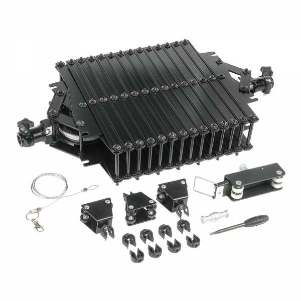 Пантограф Falcon Eyes #3335 предназначен для крепления осветительных приборов и другого оборудования (генераторы тумана, снега, мыльных пузырей) на потолочной подвесной системе Falcon Eyes А 3303. Пантограф изготовлен из алюминиевого сплава и при своих габаритах весит всего около 7 кг. Толщина рычагов пантографа 3 мм. Шарниры изготовлены из стали.
