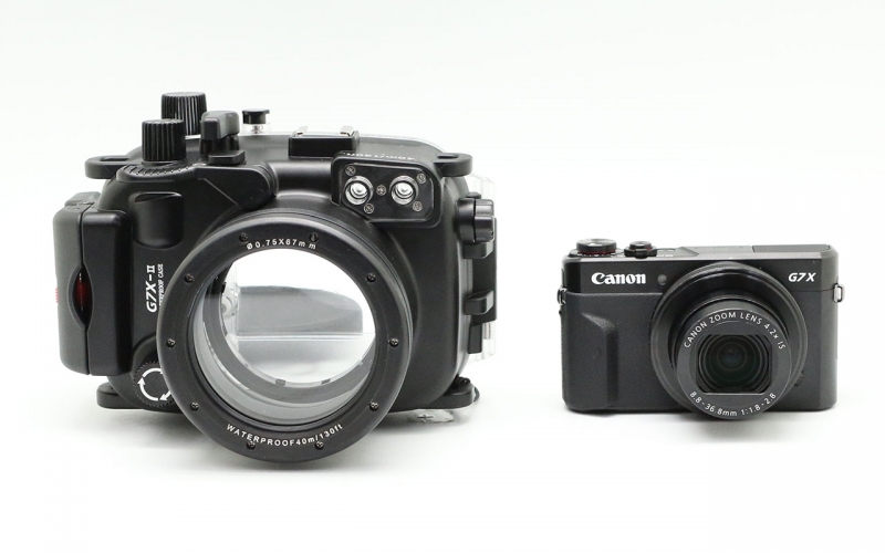 Подводный бокс (аквабокс) Meikon для фотоаппарата Canon Powershot G7x II Подводный бокс (аквабокс) для цифрового фотоаппарата Canon Powershot G7x II. - глубина погружения 40 метров, при изготовлении использованы материалы - прочный поликарбонат, закаленное стекло, нержавеющая сталь. К боксу предусмотрено подключение внешних подводных вспышек через оптоволоконный кабель, а также подсоединение насадок и фильтров. Бокс прошел сертификацию IPX8 & CES. Все боксы прошли проверку в барокамерах.