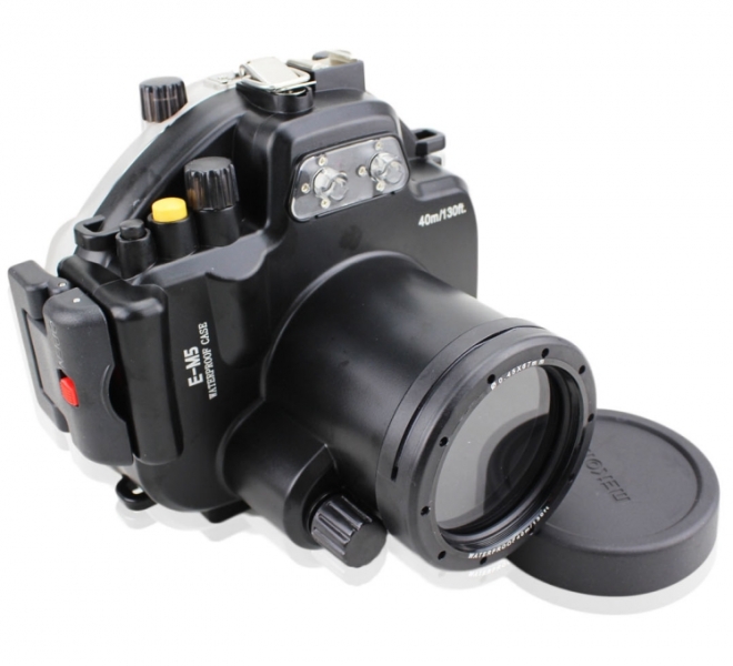 Подводный бокс (аквабокс) Meikon для фотоаппарата Olympus OM-D E-M5 (12-50 мм) Аквабокс для фотоаппарата Olympus OM-D E-M5 с объективом 12-50 мм. Черный и прозрачный поликарбонат. Глубина погружения до 40 метров.