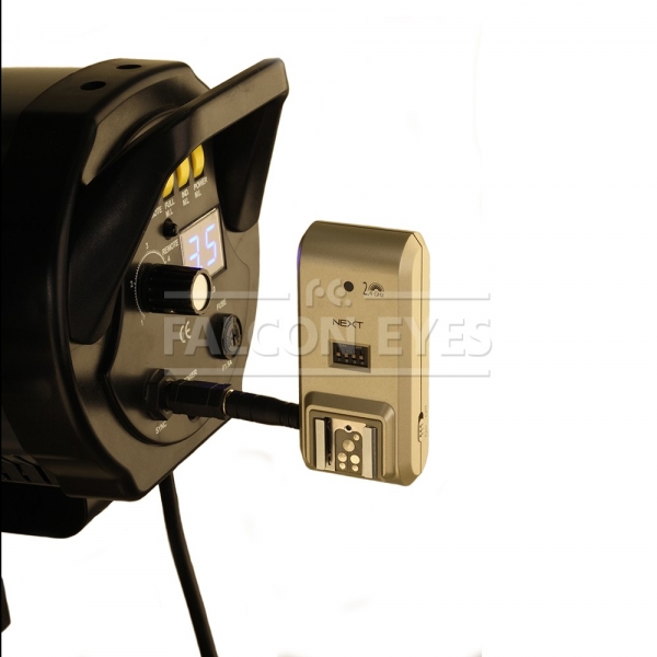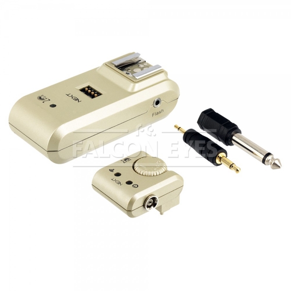 Falcon Eyes NEXT — комплект радиосинхронизации для фотоаппаратов Sony серии NEX, предназначен для управления студийными или вынесенными отдельно на стойки накамерными вспышками. Передатчик устанавливается в порт вспомогательного оборудования камеры NEX и передает сигнал на приемник при срабатывании затвора. Приемник подключается к вспышке с помощью «горячего» башмака (для студийных вспышек используется входящий в поставку штекер для синхронизации с разъемом 2,5 мм), работает от двух батареек ААА и запускает вспышку при получении сигнала от передатчика. Встроенная функция пробуждения из «спящего режима» обеспечит бесперебойную работу со вспышками. Приемник устанавливается на стойку, штатив или другую опору с помощью крепления «холодный» башмак с резьбой 1/4". Falcon Eyes NEXT имеет возможность выбора одного из 16 каналов связи, что позволяет объединить осветители в группы (при условии использования нескольких приемников NEXT R) или использовать независимо несколько комплектов NEXT на небольшом расстоянии друг от друга. Скорость синхронизации до 1/320 секунды.