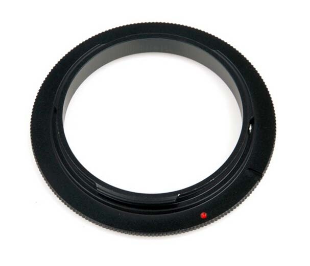 Реверсивный адаптер предназначен для макросъемки. Позволяет присоединить объектив к фотоаппарату в перевернутом положении. Адаптер накручивается на резьбу для светофильтра и устанавливается в фотоаппарат. Благодаря реверсивному адаптеру вы сможете снимать мелкие объекты с большим увеличением, пользуясь штатным объективом и не тратя много средств на дорогие макрообъективы. Можно использовать объективы сторонних производителей (диаметр под светофильтр на объективе должен совпадать с реверсивным переходником). Необходимо учитывать, что при работе с данным адаптером не будет работать автофокус и прыгающая диафрагма, значение диафрагмы не будет передаваться камере. Возможно ручное (в некоторых случаях полуавтоматическое) управление. Из-за снижения светосилы усложняется наводка на резкость.