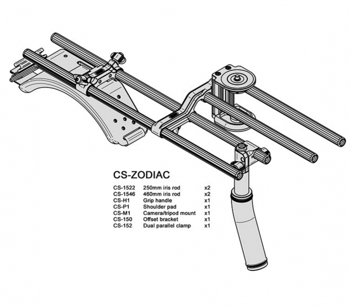 Профессиональный комплект поддерживающих штоков для HDSLR-камер CS-ZODIAC позволяет осуществлять регулировку положения по осям x и y. Таким образом обеспечивается наиболее выгодная точка для съемки, независимо от того, используете ли вы оптический видоискатель или LCD-экран на DSLR-камере. Благодаря модульной конструкции комплектов поддерживающих штоков Cambo, у пользователя есть возможность подсроить оборудование под свои нужды. CS- ZODIAC может быть использован с любой системой фоллоу-фокус или компендиумом. Этот комплект поддерживающих штоков для HDSLR-камер может быть использован с различными типами камкордеров. Для использования с DSLR-камерами с аккумуляторными батареями, струбцина CS-153 может быть повернута вверх ногами. Комплект поставки CS- ZODIAC включает в себя:
