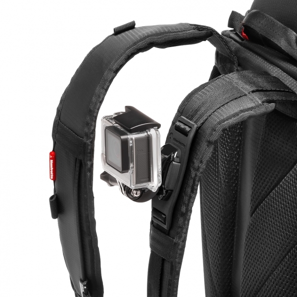 Новинка от компании Manfrotto – рюкзак для экстремальных путешествий. Легкий, компактный и эргономичный. Специальное крепление камеры GoPro для съемки на ходу. Внутренние съемные чехлы для защиты оборудования вмещают до 3 камер GoPro и одной компактной фотокамеры типа Sony A7 с объективом 24-70/4. В рюкзаке можно расположить различные аксессуары и личные вещи. Отделение для ноутбука до 12,9 ". Верхняя крышка рюкзака усилена дополнительной защитой. На вешней стороне рюкзака предусмотрен карман для штатива Pixi. Широкий поясной ремень и дополнительный ремень на груди обеспечивают надежную фиксацию рюкзака при экстремальных приключениях. Дождевой чехол в комплекте. Рюкзак изготовлен их высококачественных материалов. Цвет черный.