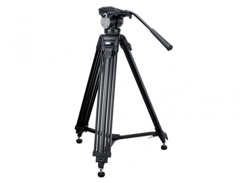 Профессиональный видеоштатив выполнен из алюминиевого сплава и имеет собственную профессиональную (плавающую)мощную видеоголовку с ручкой для легкого и быстрого управления положением камеры. Секции ног штатива двух верхних уровней сделаны из пары тонких трубок каждая.Это гарантирует устойчивость от колебаний ветра. Ноги заканчиваются стальными шипами