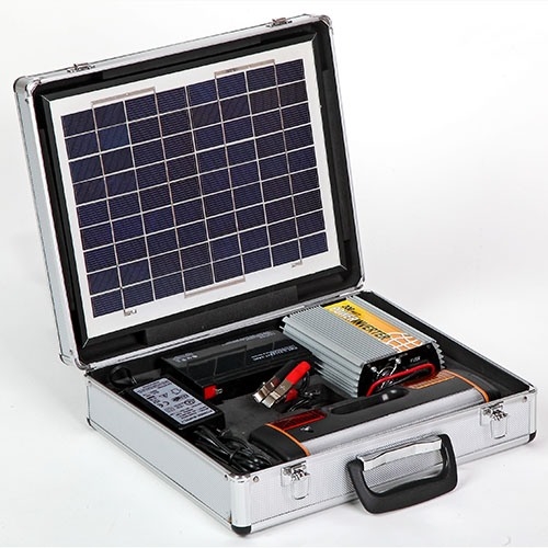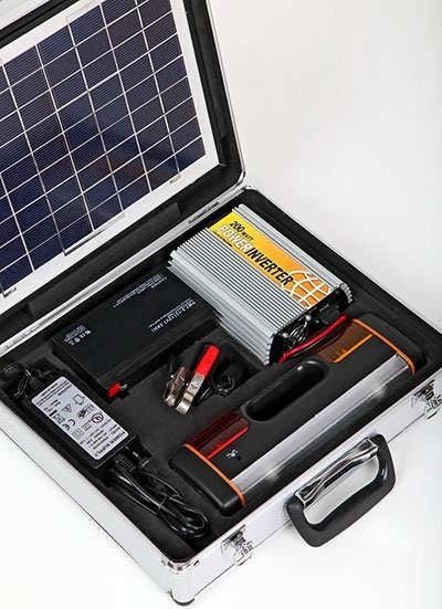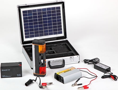 Источник питания для устройств, мощность которых не превышает 200 Вт, используемый в местах, где нет доступа к электроэнергии. Заряжается от солнечной батареи и отлично подходит для питания ноутбука, переносного телевизора, светильника. Может быть использован как источник бесперебойного питания. Удобство пользования обеспечивается наличием стандартной розетки и гнезда автоприкуривателя. В комплект включен мощный фонарь с 5 режимами. Удобство транспортировки и защиты от повреждений обеспечивает металлический кейс. Аккумулятор разрядился, а поблизости нет розеток?В жизни каждого человека, наверняка, случалось такое, что от одного телефонного звонка зависело очень многое, и как раз в этот момент у телефона "садился" аккумулятор и он переставал работать. Стоит отметить, что подобные казусы могут произойти и с ноутбуком и множеством другой мелкой бытовой техники именно в тот момент, когда она оказывается очень нужна. В этом, конечно, нет ничего страшного, если Вы находитесь дома или в любом другом месте, где есть доступ к розетке. Включили зарядное, подсоединили к устройству и без проблем закончили начатое дело. А как же быть в том случае, когда электрическая сеть недоступна? Ведь подобная ситуация может произойти в поездке, походе, во время отдыха на природе и во многих других случаях. Как известно, аккумуляторы мелкой техники не отличаются большой емкостью, и, соответственно, нуждаются в частой подзарядке. Как вариант, можно приобрести несколько запасных аккумуляторов и, отправляясь в поездку, брать их с собой. Тем не менее, это далеко не лучший способ, особенно если Вы используете гаджет интенсивно, а поездка намечается длительная. Как же быть в подобной ситуации? Заряжайте аккумуляторы своей техники с помощью солнечной батареи!Как оказалось, безвыходных ситуаций не бывает! Даже находясь на значительном расстоянии от мест, где есть возможность воспользоваться розеткой, Вы сможете подзарядить аккумулятор своего гаджета, воспользовавшись экологически чистой и совершенно бесплатной энергией солнца. А поможет Вам в этом система "Sun Battery Case", которая способна запитать: