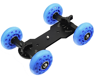 Скейтер Dolly представляет собой мини-тележку, позволяющую получить плавное движение в кадре с изменением перспективы. Для работы подходит любая ровная поверхность. Скейтер быстро собирается и легко настраивается, движется гладко и плавно благодаря мягким колесам. Колеса могут поворачиваться в разные стороны, благодаря чему камера может двигаться как по прямой, так и по кругу.