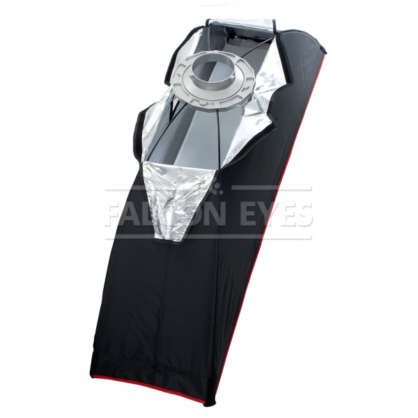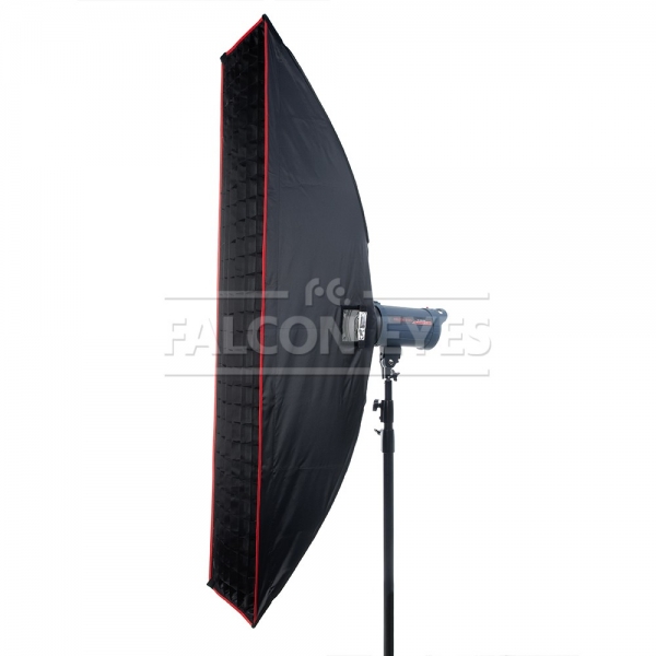 Софтбокс Falcon Eyes SBQ-30160 BW жаропрочный с сотовой насадкой — световой модификатор для студийных осветительных приборов с байонетом Bowens, предназначен для создания мягкого рассеянного освещения без резких теней и бликов. Размер софтбокса 30×160 см. Может использоваться практически с любыми студийными вспышками или галогеновыми осветителями мощностью до 1000 Вт. Софтбоксы с соотношением сторон более чем 1:3 называют стрипбоксами, их используют для ростовой съемки, создания градиентной подсветки на фоне, в предметной съемке для получения яркого длинного блика, и там, где нужно получить направленный узкий свет, например для подсветки волос и плеч сверху.