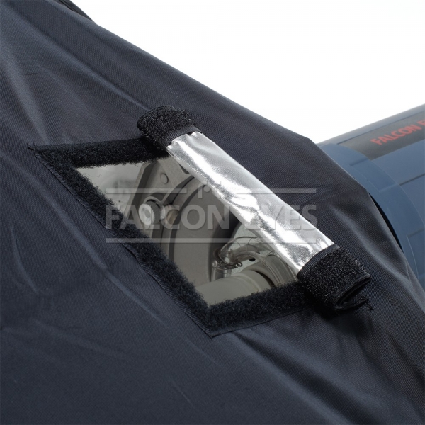 - Изготовлен из жаропрочного материала, на стенках расположены вентиляционные карманы для отвода тепла. Рабочая поверхность софтбокса выполнена из качественной жаропрочной синтетической ткани с высокоотражающей металлизированной серебристой (нефактурной) поверхностью, рассчитана на длительную эксплуатацию при интенсивной работе в студии, не отслаивается и не меняет отражающие свойства в течение длительного времени. Для циркуляции воздуха внутри изделия и отвода избыточного тепла имеются два вентиляционных окна.